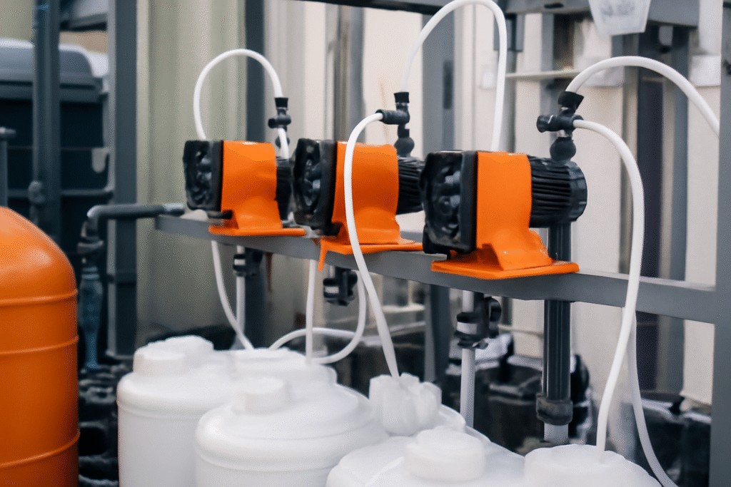 - Precision Metering pumps, dosing lines, injection nozzles, and storage tanks