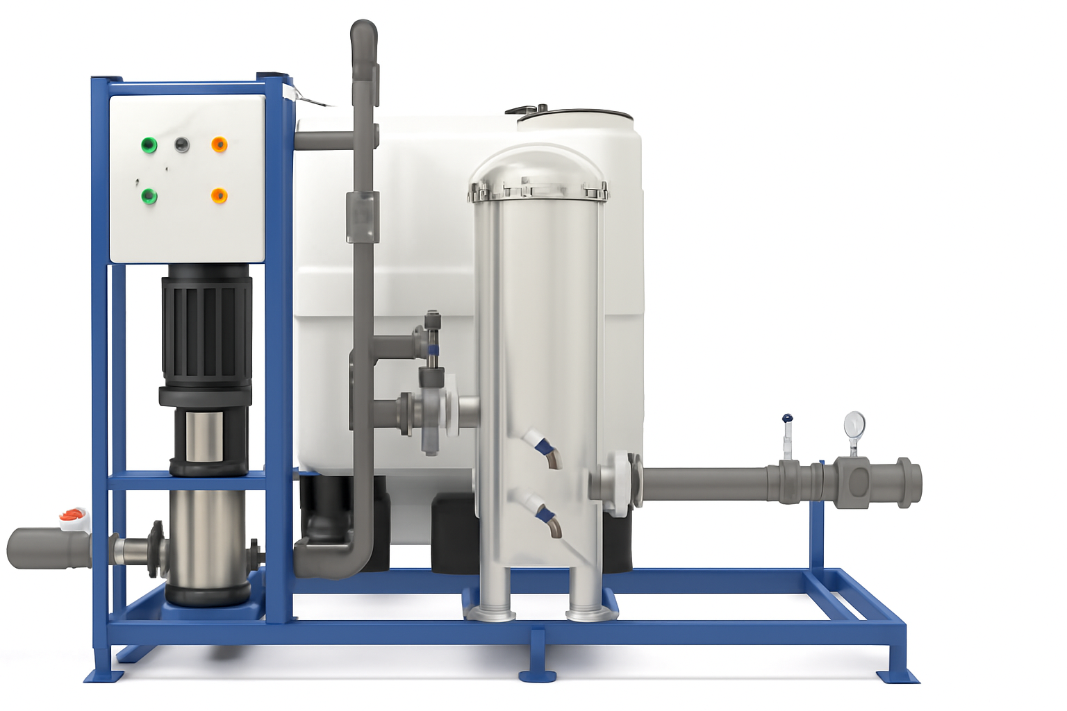 SMBS Dosing System: Neutralizes chlorine and protects RO membranes from oxidative damage.