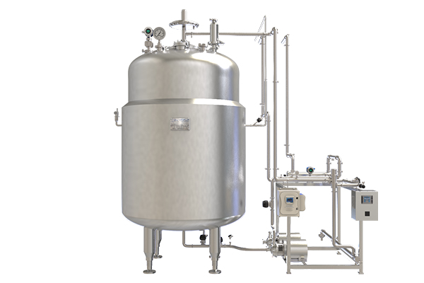 - Continuous recirculation loop using sanitary pumps.